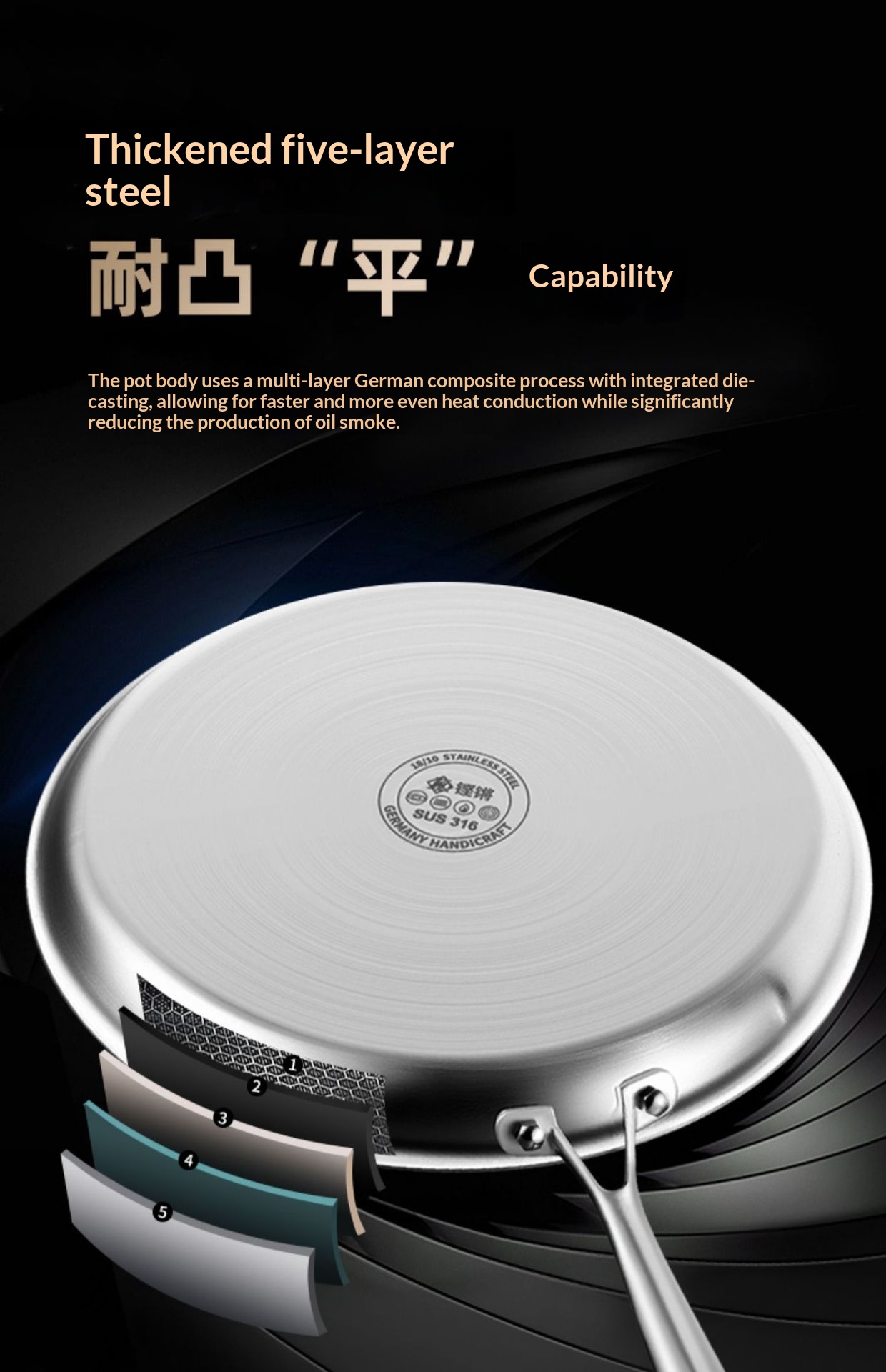 316 Stainless Steel Multi-Layer Skin Flat Non-Stick Pan