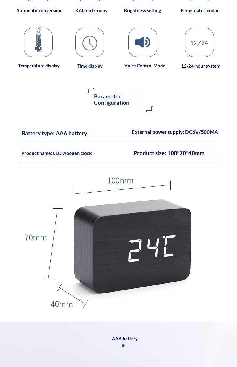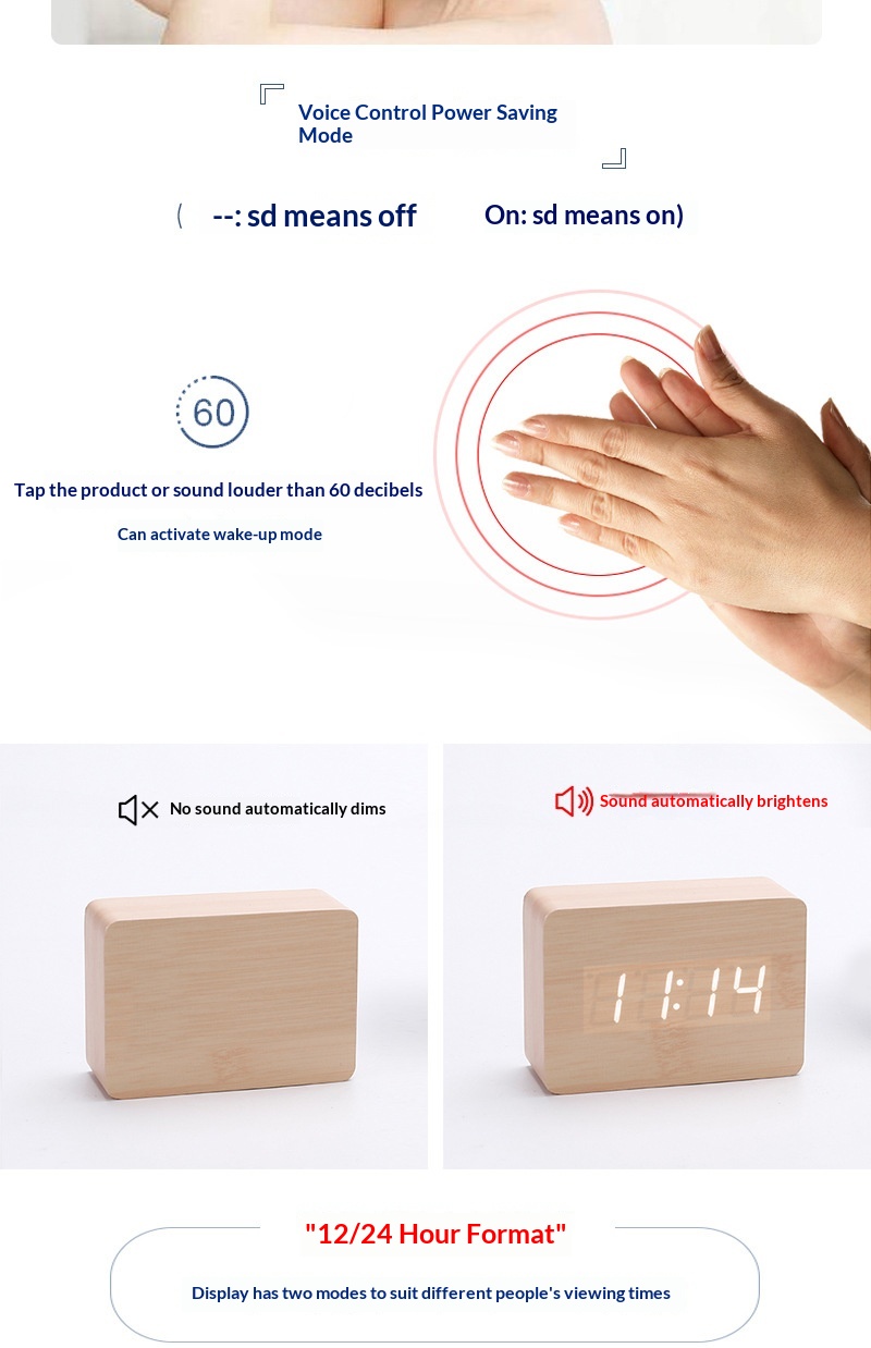 Sleek Mini LED Rectangular Wooden Digital Clock